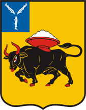Red colour - symbol of courage, selflessness, fair struggle and life. In the coat of arms are represented red bowll, the bull has red eyes, horns, language and foots.