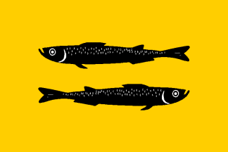 Yellow with two black fishes, the upper one looking to the
