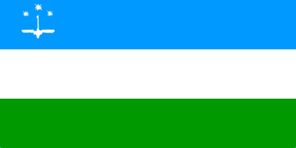 The flag of the town of Khanty-Mansiysk is a rectangular width divided