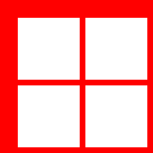 squares 2×2 forming a cross and a edge frame, larger in the hoist and in