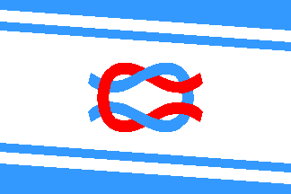 - white flag, in center of fly three blue stripes; in center blue/red contoured