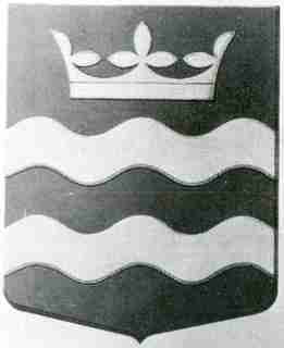 Blazon: Blue, below a crown two bars wavy all argent. The crown refers to