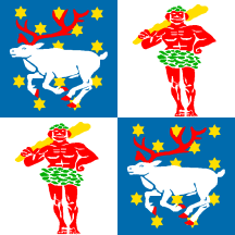 blått fält en springande ren av silver med röd beväring."; Lappland:
