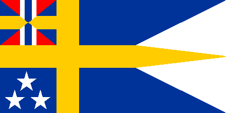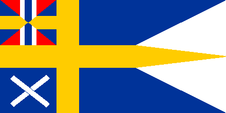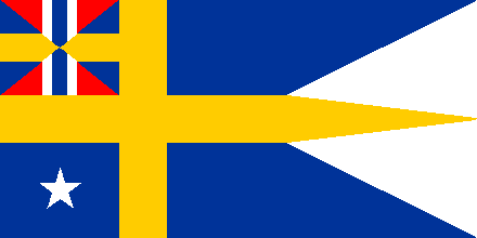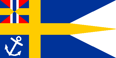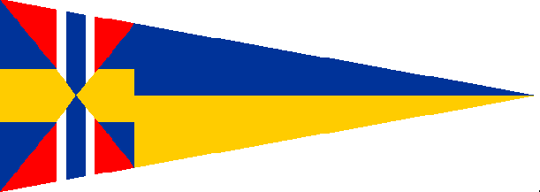There is also a pennant, triangular, blue over white with the union mark at the hoist side. This is similar to the pennant for a Commander of a detachment in the Norwegian navy, though this pennant is only illustrated in the 1875 regulations - no explanatory caption or text. However, Hägg captions this as the pennant of a Commander of a detachment or of the senior officer.