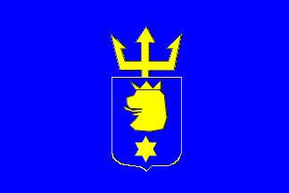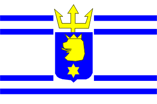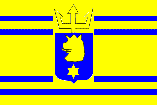 with a lion's head over a 6-pointed star, surmounted by a trident, all yellow.