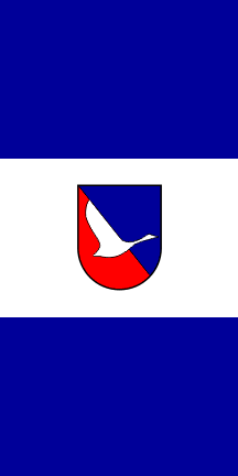 three equal panels, with the municipal coat of arms placed in the middle of the central panel. The height of the caot of arms is 2/3 of the flag's height.