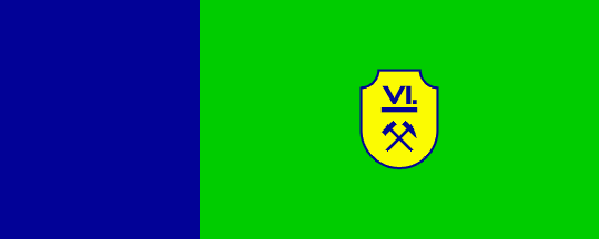municipal website shoes a slightly longer, horizontal flag, but the blue part is lesser then 1/3 of the length of the flag,