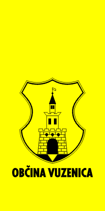 Gogala [gog02] and Stanič & Jakopič [j2s05] show the flag of Vuzeinca as hoisted vertically, in proportions 2:1, yellow with the municipal coat of arms in the base above the name of the municipality.