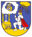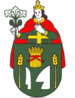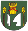 Small table flag of Chl'aba-Helemba village (SK-NZ; with the Coat of Arms of