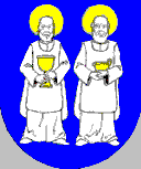 ...curiously the Coat of Arms contains two saints, Cosmas and Damian, but not St.