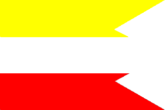 "Vlajku tvoria tri pozdlžne pruhy vo farbách: žltej, bielej, a cervenej