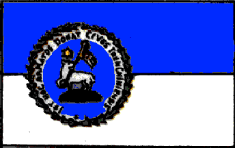 flag is bordered with a margin of town colours - red, white and blue. The