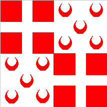 is a quarterly divided square flag. The 1st and 4th quarter are showing the