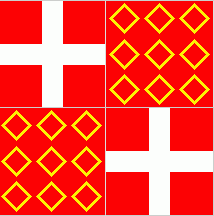Greek cross in a red field of the Order of St. John. The 2nd and 3rd quarter are