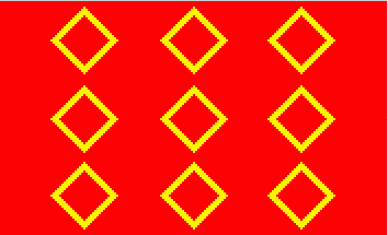 is a rectangular flag. In a red field are nine red diamonds ordered three