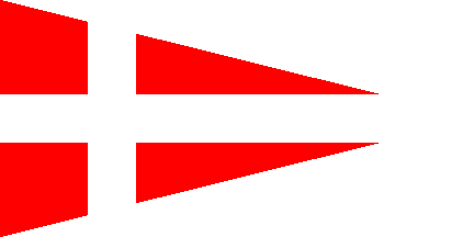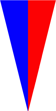 It is a hanging pennant, vertically divided into red and blue of ratio