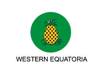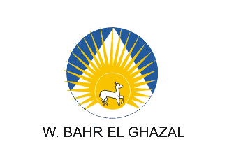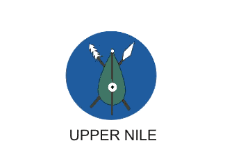 The flag of Eastern Equatoria state comprises four horizontal stripes of yellow, black and red with the state emblem or logo in the centre. The yellow symbolises the state's rich mineral resources, while black represents the African inhabitants and red symbolises the bloodshed during the liberation struggle. The green within the central oval emblem represents vegetation and agriculture. The cheetah, described as gently moving symbolises the rate of development and the nature of the people of Eastern Equatoria who are always organised and quick to respond - taken from this source.