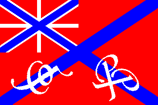 I guess that this flag was made by applying red letters to existing