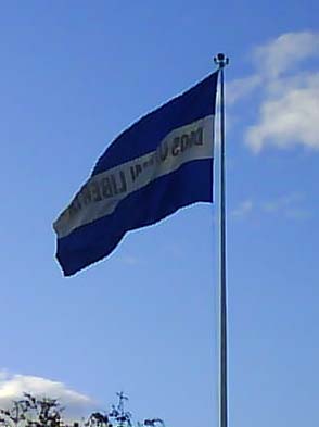Libertad in gold on the upper blue stripe and the name of the