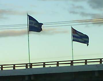 of the flags flying on an overpass. Interesting also is that the flag with the