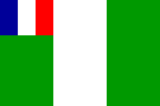 The state used an horizontally divided green-white-green flag with the French Tricolore (optical proportions) [i.e. stripes 30+33+37] in canton, extending over the half of the flag. (...)It is highly probable that all of these flags with the Tricolore in canton had a naval version, with optical proportions [30+33+37], and a land version, with equal stripes [1+1+1]. Since most reports came from naval sources, most of the illustrated flags have optical proportions.