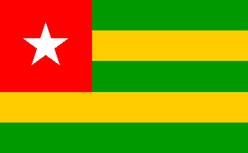 Symbolism of its colours - Red is the symbol of the blood which was shed by Togolese people for independence and of the blood which will be shed by the sons of the Nation in order to protect its integrity and sovereignty against all aggressors. Today it ought to be understood as symbolizing of the martyrdom of our countrymen who died for Democracy and Legality, as is epitomized by the young Tavio Amorin (1992) and many others [The latter sentence, I think, must be a personal statement by the author.]