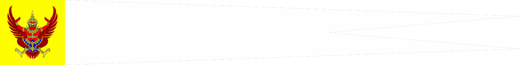 The "Maharaj Noi" is divided into two parts, each not more than 60 cms wide. While one part is of the same colour and pattern as the "Maharaj Yai", the adjoining part is a long white flag tapering off to a point. The far right or "fly" end, which is cut in the shape of a bird's tail is only half the width of the left end, occupying 3/8 of the total width.