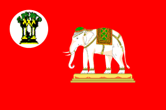 This flag is similar to the "Trairanga" except for the fact that the figure of a "Singha" standing on a yellow platform in the centre.
