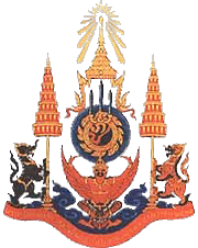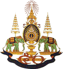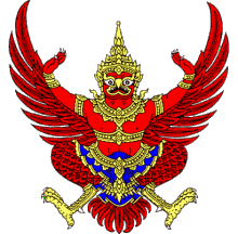 Željko Heimer, 30 Mar 2003"This is not the coat of arms of Thailand. The real Thai Coat of Arms (Tra Khrut) should have sharp wing tips – the wingtips of this image are blunt. The real Khrut should have 7 external wing-tips per side – there are 9 wingtips in this image. The real Khrut should be wearing wearing what looks like a high belt which connects to its necklace – the one in this image is only wearing a necklace. The fingertips of the real Khrut should be pointed directly at the apex of its Monthien (hat) at 45 and 225 degree angles – the one in this image has fingers that are horizontal. The tail design is distinctly different."