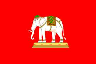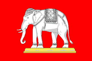 This is a red flag with a white elephant - in full caparison - standing on a dias [sic, probably "dais"] facing the flagpole. In accordance with a Royal Command issued by King Rama I [1782-1809 AD], the flag was originally designed in the form of a red flag with a white "chakkra" in the middle denoting the Royal Yacht. Later on, in B.E.2440 [1897 AD], the design was changed – by the Royal command of King Rama V – to emerge as the version seen here. This version has been in use until B.E.2460 [1917 AD].