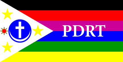 and blue striped the letters "PDRT" set in bold serif capitals (I used
