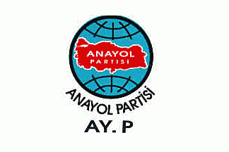 The above image was drawen after the party website (no longer online). The flag, adopted in May 1994, represents the future of Turkey united with the world.