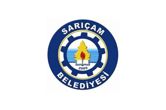The flag of Sarıcam (photos) is white with the municipality's emblem in the middle. "SARICAM BELEDİYESİ" means "Sarıcam Municipality".