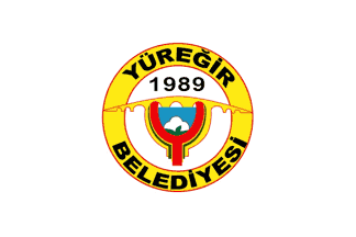 The flag of Yüreğir (photo) is white with the municipality's emblem in the middle. "YÜREǦİR BELEDİYESİ" means "Yüreğir Municipality".