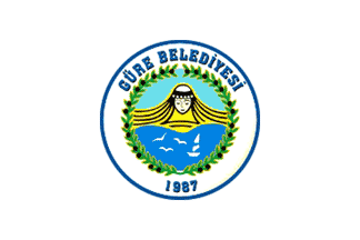 The flag of Güre (photo) is white with the municipality's emblem. "GÜRE BELEDİYESİ" means "Güre Municipality".