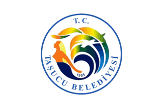 The flag of Taşucu (photo) is white with the municipality's emblem in the middle. "T.C." stands for "Türkiye Cumhuriyeti", "Republic of Turkey". "TAŞUCU BELEDİYESİ" means "Taşucu Municipality".