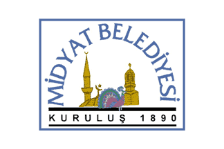 The flag of Midyat (photo) is white with the municipality's emblem in the middle. "MİDYAT BELEDİYESİ" means "Midyat Municipality": "KURULUŞ", means "Foundation"