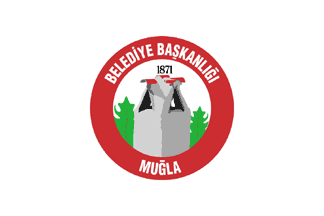 The flag of Muğla (photo, photo) is white with the municipality's emblem (image). "BELEDİYESİ BAŞKANLIǦI" means "Municipality Presidency".