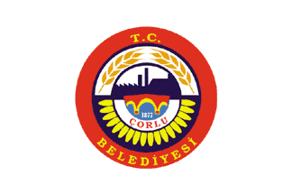 The flag of Çorlu (photo) is white with the municipality's emblem (image). "ÇORLU BELEDİYESİ" means "Çorlu Municipality".