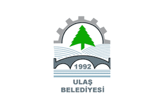 The flag of Ulaş (photo) is white with the municipality's emblem. "ULAŞ BELEDİYESİ" means "Ulaş Municipality".