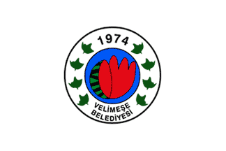 The flag of Velimeşe (photo) is white with the municipality's emblem. "VELİMEŞE BELEDİYESİ" means "Velimeşe Municipality".