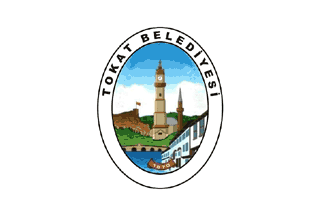 The flag of Tokat (photo, photo) is white with the municipality's emblem. "TOKAT BELEDİYESİ" means "Tokat Municipality".