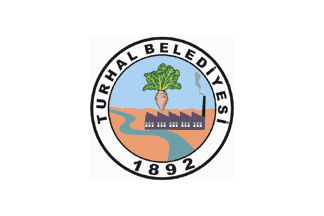 The flag of Turhal (photo) is white with the municipality's emblem. "TURHAL BELEDİYESİ" means "Turhal Municipality".