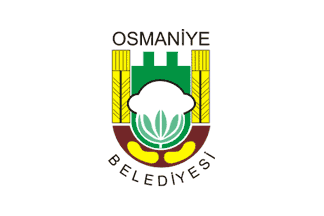 The flag of Osmaniye (photo) is white with the municipality's emblem (image) in the middle. "OSMANİYE BELEDİYESİ" means "Osmaniye Municipality".