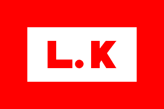 and with red letters "L.K". The red border is 1/4 of the hoist width,