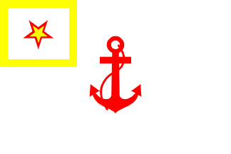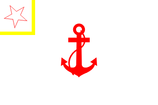 Album des Pavillons[pay00] shows the port commander's flag as rectangular, white with a red fouled anchor in the middle and a yellow bordered canton containing a red outlined five-pointed star.