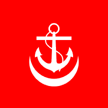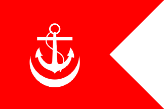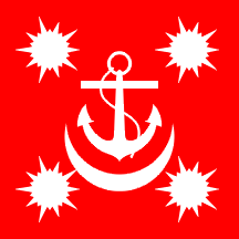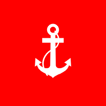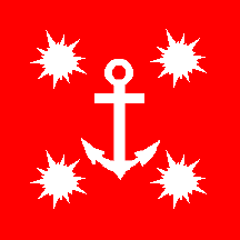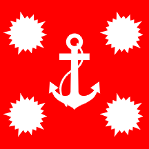 the Commander of a navak base is a red square flag with a white fouled anchor.