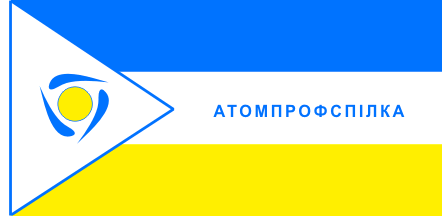 Flag of Atomprofspilka - Trade union of nuclear industry of Ukraine. Image made according to photo at <www.desnay.ru>, reported by M.Revnivtsev.