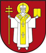 crossed by gold and azure. In a board there is azure St Nicola on