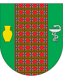 dexter flank is jug or, in left is bowl twined a snake argent."
